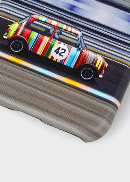 ■商品説明 マルチストライプMiniがサーキットを走る風景をプリント表現したiPhoneケース。